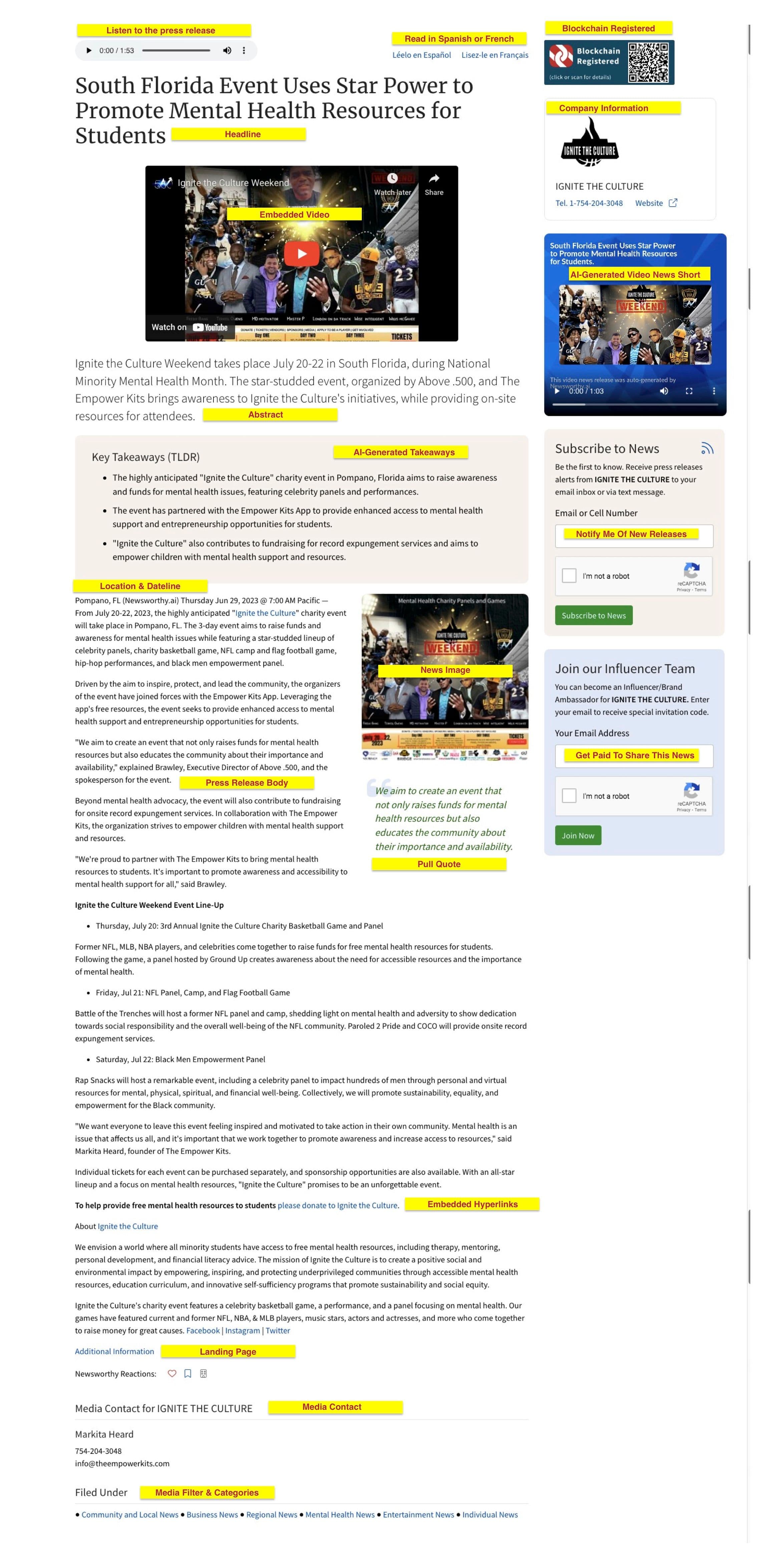 This image of a press release from Newsworthy.ai shows you how your various sections come together to form a search-optimized online press release.